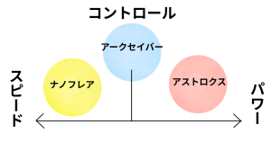 ヨネックスは、パワーの「アストロクス」、操作性の「ナノフレア」、攻守バランスの「アークセイバー」と、プレースタイルに合わせた多彩なシリーズを展開しています。